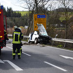Nach derzeitigem Ermittlungsstand befuhr ein 76-jähriger Mann mit seinem VW Touran die Landesstraße 549 und konnte sein Fahrzeug aufgrund einer plötzlich auftretenden körperlichen Ausfallerscheinung nicht mehr kontrollieren. Aus diesem Grund fuhr er an der Einmündung zur Bundesstraße 45 geradeaus und kollidierte mit der Leitplanke. Der Mann musste durch Feuerwehrkräfte aus seinem Auto befreit werden. Er wurde in ein nahegelegenes Krankenhaus gefahren und wegen der aufgetretenen Ausfallerscheinung ärztlich versorgt. Die Beifahrerin des Tourans wurde nicht verletzt.