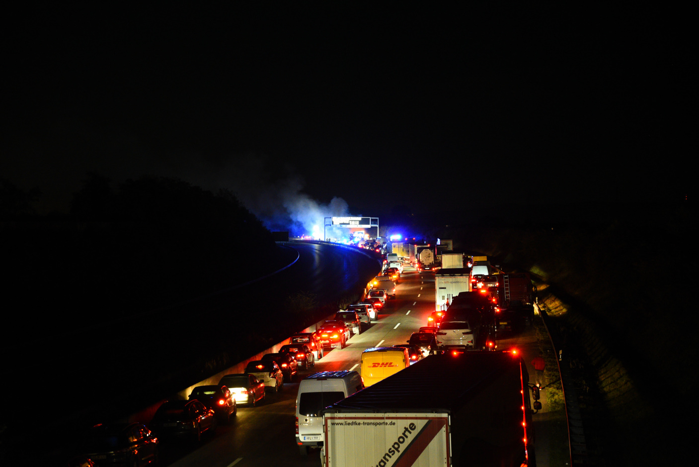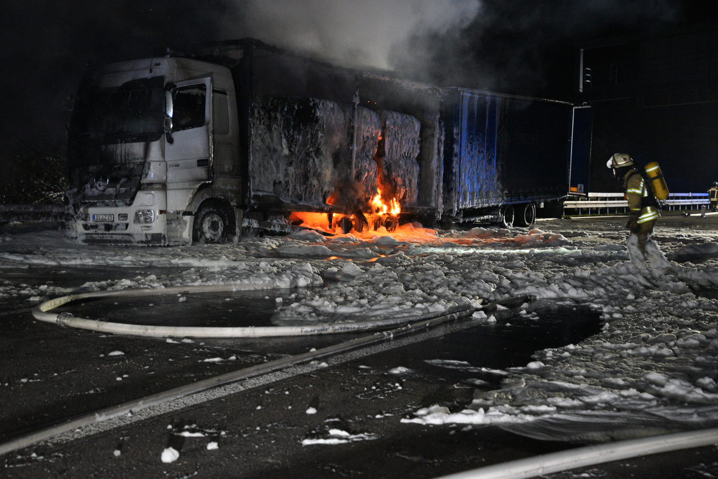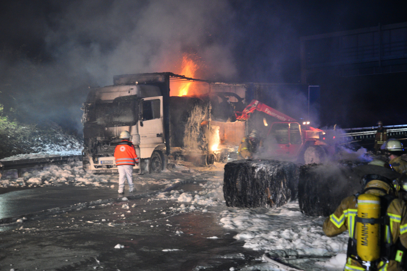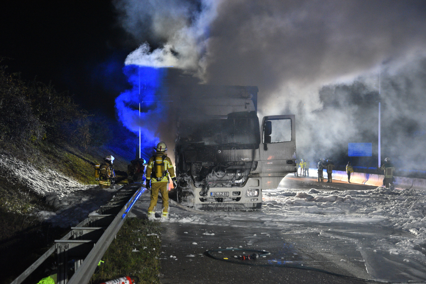 Stand 20.17 Uhr: Kurz vor 18 Uhr meldeten mehrere Verkehrsteilnehmer einen brennenden LKW auf der A6 auf dem Standstreifen zwischen dem Kreuz Mannheim und dem Viernheimer Kreuz. Nach ersten Erkenntnissen geriet das Fahrzeug im Bereich des Führerhauses während der Fahrt in Brand und griff dann auf den Anhänger über. Als der Fahrer des LKWs dies bemerkt hatte, hielt er sofort an. Da er Rauchgas einatmete befindet er sich derzeit vorsorglich in medizinischer Behandlung. Die Berufsfeuerwehr Mannheim, Rettungsdienst und Polizei sind mit einem Großaufgebot vor Ort. Es kommt nach wie vor zu starker Rauchentwicklung. Die Fahrbahnen zwischen den Autobahnkreuzen Mannheim und Viernheim sind zwecks Nachlösch-und Aufräumarbeiten weiterhin in beide Richtungen voll gesperrt. Die Brandursache ist derzeit noch unklar. Es kommt zu Rückstau in beiden Richtungen.