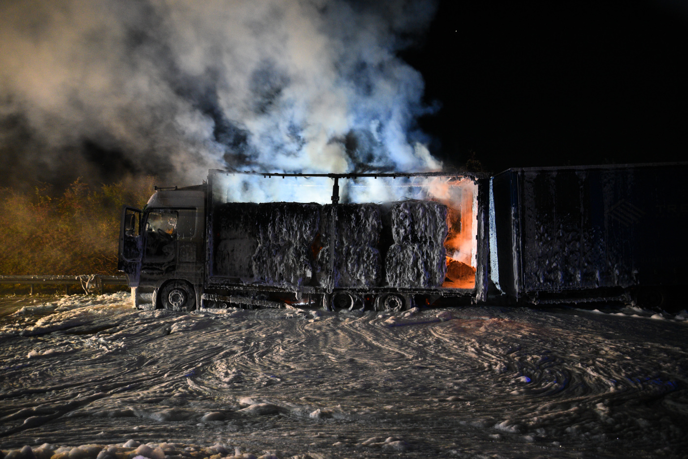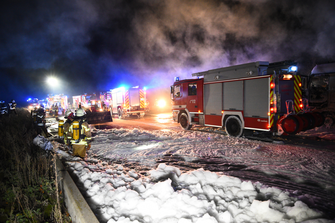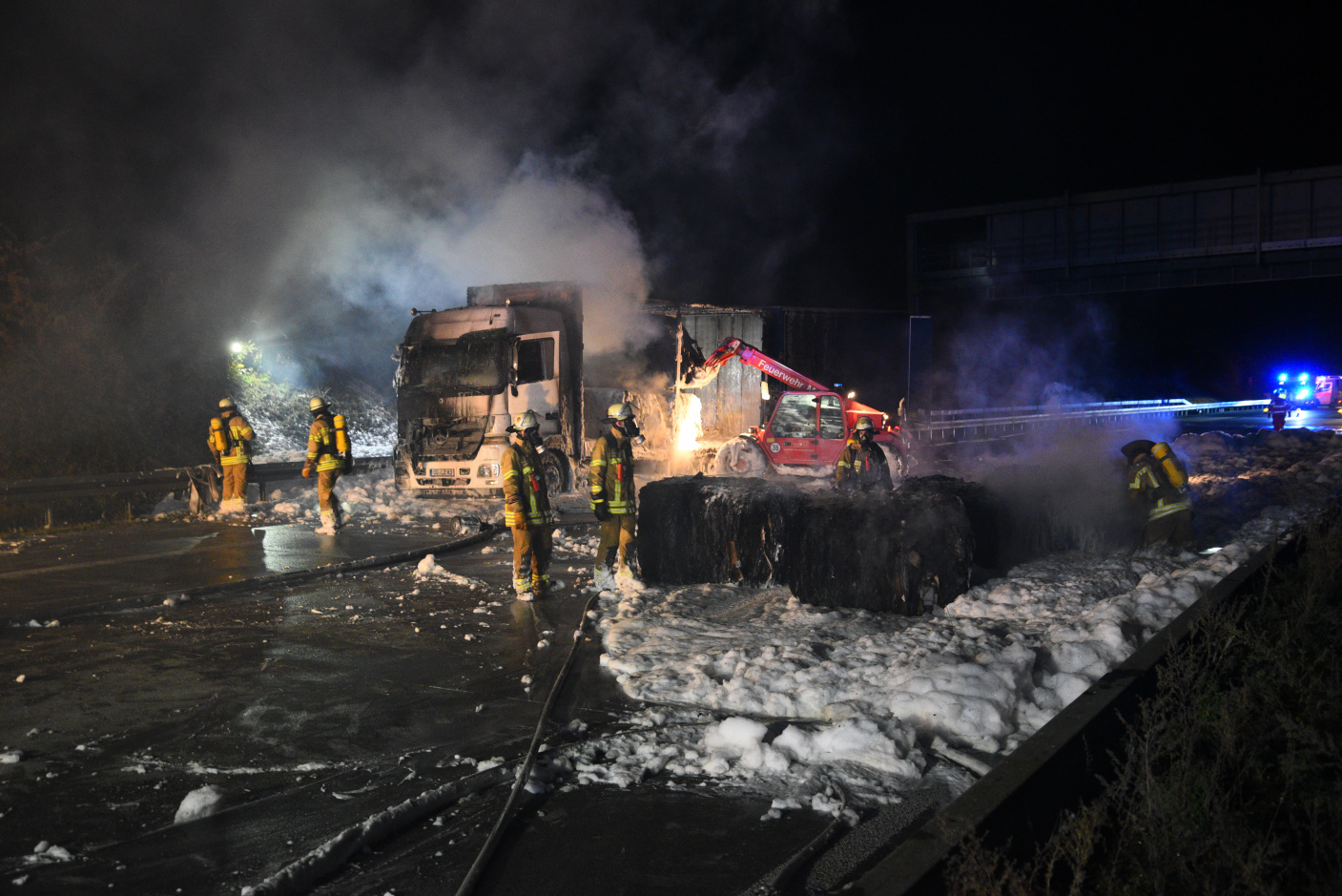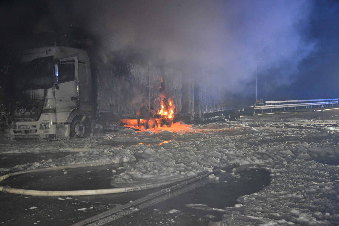 Stand 20.17 Uhr: Kurz vor 18 Uhr meldeten mehrere Verkehrsteilnehmer einen brennenden LKW auf der A6 auf dem Standstreifen zwischen dem Kreuz Mannheim und dem Viernheimer Kreuz. Nach ersten Erkenntnissen geriet das Fahrzeug im Bereich des Führerhauses während der Fahrt in Brand und griff dann auf den Anhänger über. Als der Fahrer des LKWs dies bemerkt hatte, hielt er sofort an. Da er Rauchgas einatmete befindet er sich derzeit vorsorglich in medizinischer Behandlung. Die Berufsfeuerwehr Mannheim, Rettungsdienst und Polizei sind mit einem Großaufgebot vor Ort. Es kommt nach wie vor zu starker Rauchentwicklung. Die Fahrbahnen zwischen den Autobahnkreuzen Mannheim und Viernheim sind zwecks Nachlösch-und Aufräumarbeiten weiterhin in beide Richtungen voll gesperrt. Die Brandursache ist derzeit noch unklar. Es kommt zu Rückstau in beiden Richtungen.