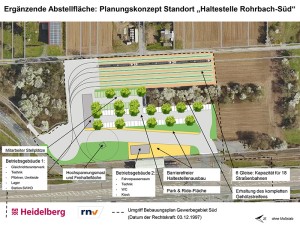 „Alle sprechen von der Verkehrswende. Aber um mehr Menschen zum Umsteigen auf Bus und Bahn zu bewegen, brauchen wir auch einen leistungsfähigen Fuhrpark und die dazu passende Infrastruktur“, ergänzt Martin in der Beek, Technischer Geschäftsführer der rnv. „Das aktuelle Konzept mit einem vollwertigen Betriebshof in Bergheim sowie zwei zusätzlichen kleineren Abstellmöglichkeiten für Busse und Bahnen ist nicht nur hinsichtlich der Kapazität für die nächsten Jahrzehnte zukunftsfähig. Im Hinblick auf einen möglichen Netzausbau in der Zukunft wäre gerade eine zusätzliche Abstellmöglichkeit für Bahnen im Bereich Rohrbach Süd äußerst wertvoll“, so in der Beek. „Darüber hinaus haben die aktuellen Planungen für Rohrbach-Süd – im Gegensatz zu manch anderem Vorschlag – den entscheidenden Vorteil, dass sie tatsächlich auch zeitnah umsetzbar sind. Und wir brauchen die zusätzliche Abstellkapazität schnellstmöglich, wenn wir beim Neubau des Betriebshofs in Bergheim keine weitere Zeit verlieren wollen.“