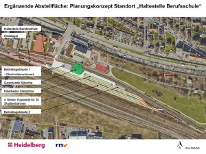 Bereits während der Neubauarbeiten werden Ausweichflächen im Stadtgebiet benötigt, um dort die Busse und Bahnen abzustellen. Diese Standorte werden auch nach Fertigstellung des neuen Betriebshofs als dezentrale Abstellflächen benötigt. Nur so können alle Fahrzeuge untergebracht werden, die bis 2040 planmäßig für die Erweiterung des rnv-Fuhrparks sukzessive angeschafft werden. Sie dienen dem notwendigen Ausbau des Heidelberger ÖPNV.
