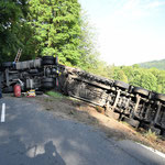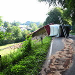 Birkenau (ots) Ein auf der Landesstraße 3408 umgekippter Lastwagen sorgte am Montagmorgen (20.7.), gegen 7.45 Uhr, bis in die Mittagsstunden für eine Vollsperrung.