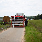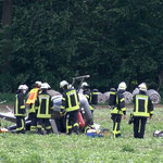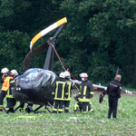 Für die Bergung des etwa 600 Kilogramm schweren Hubschraubers ist ein Kran angefordert, der das Fluggerät auf einen entsprechenden Transporter heben kann.