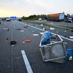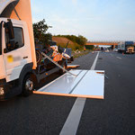 Dabei riss der Kastenaufbau des Kleinlasters ab und fiel auf die rechte Fahrbahn. Dessen Inhalt (Hausrat-Fahrer zog um) verteilte sich auf allen Fahrstreifen, sodass kurzfristig die komplette Autobahn in Richtung Heilbronn gesperrt werden musste.